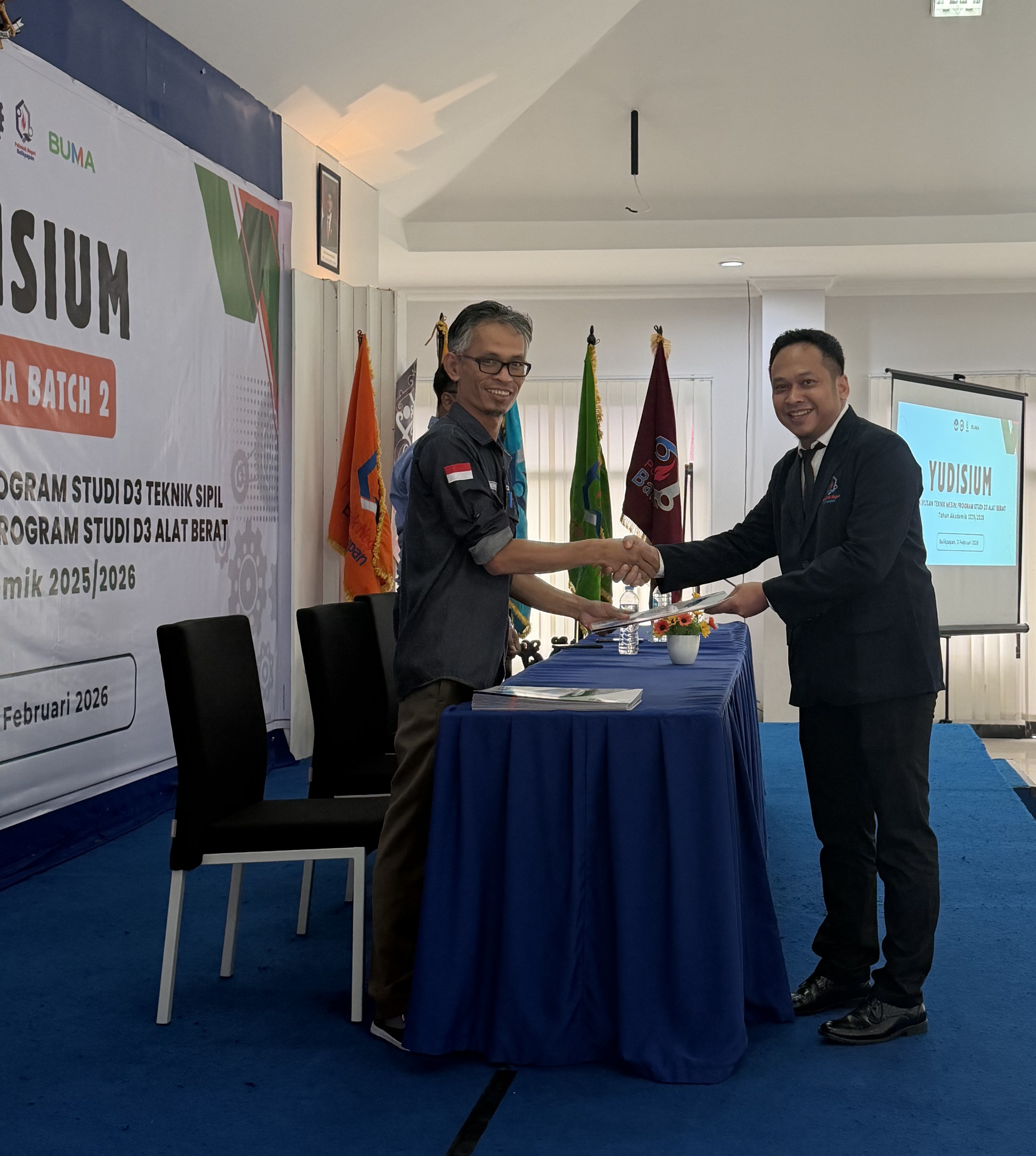 Istimewanya, yudisium kali ini mempertegas kedekatan Poltekba dengan dunia usaha. Acara ini dihadiri langsung oleh jajaran pimpinan PT Bukit Makmur Mandiri Utama (BUMA), yakni Bapak Leonardus Yudhi Prasetyo (Superintendent Plant BUMA Rebuild Center), Bapak Agung Rismawan (Frontline Development BUMA HO), dan Bapak Ahmad Galih Permadi (Trainer BUMA Rebuild Center).
